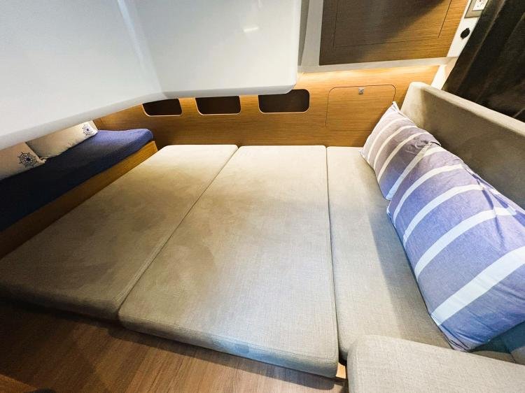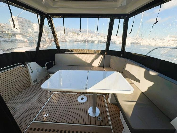 Beneteau Antares 11 OB, modelo 2022, 183 horas de motor, solo 2 propietarios y bandera española. IVA e impuestos de matriculación española pagados. Eslora según la documentación 9.9m, eslora real 11.29m. Hélice de proa y popa, aire acondicionado, toldo eléctrico en popa. Servicios al día. Homologado para 8 personas.