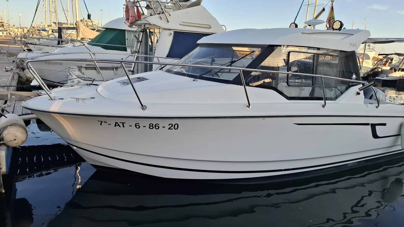 Esta Jeanneau Merry Fisher 795 (año 2016), bajo bandera española, destaca por su combinación de confort, habitabilidad y excelente rendimiento en navegación. Con una eslora de 6,97 m, manga de 2,77 m y un calado reducido de 0,50 m, ofrece gran estabilidad y acceso cómodo a cualquier zona costera.