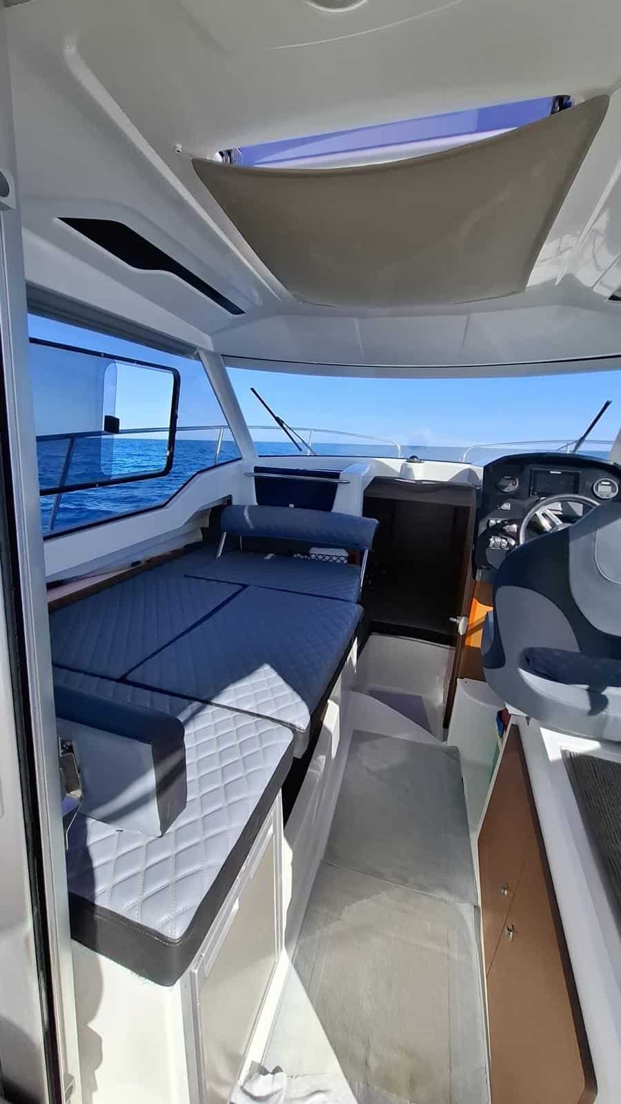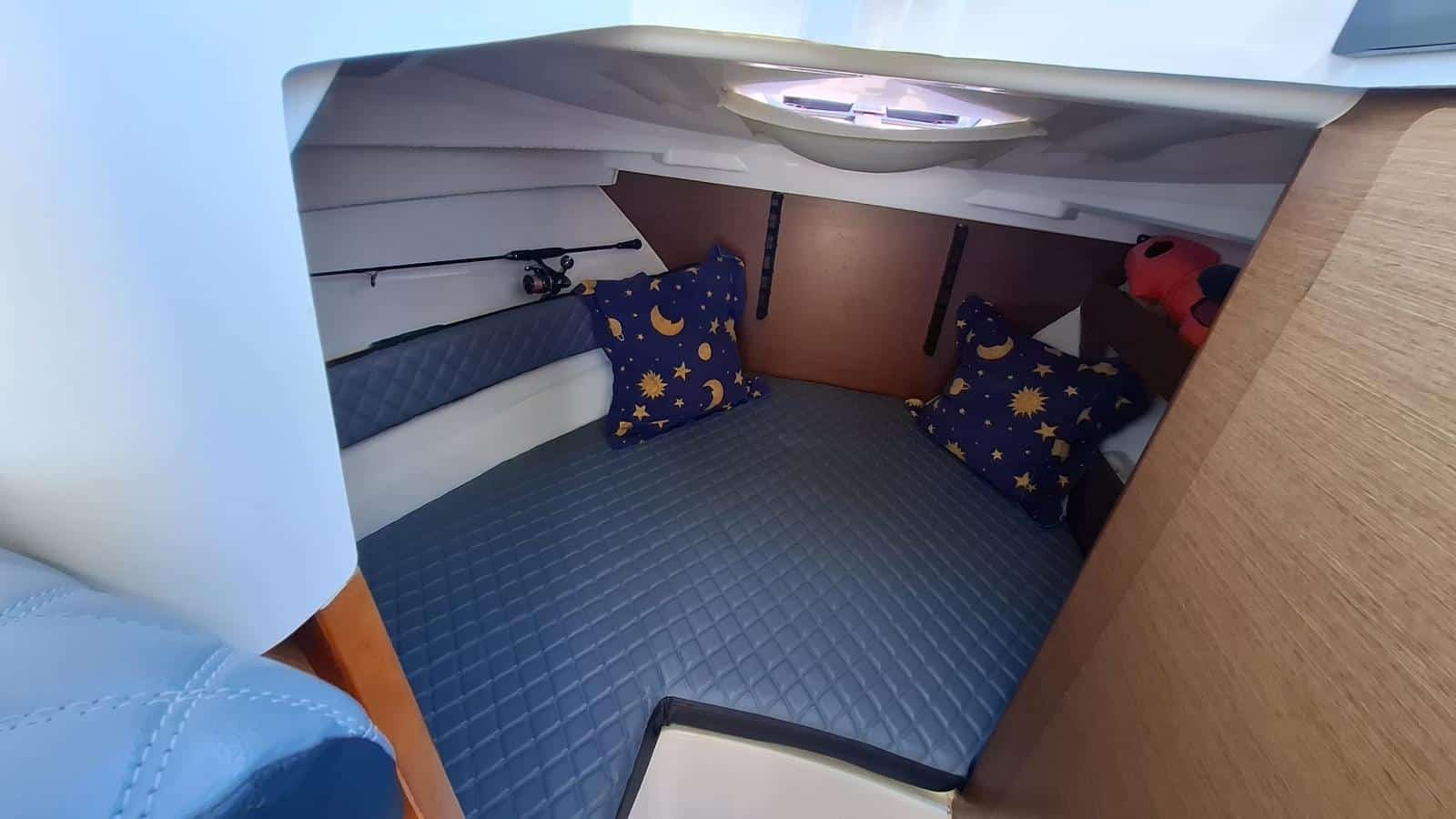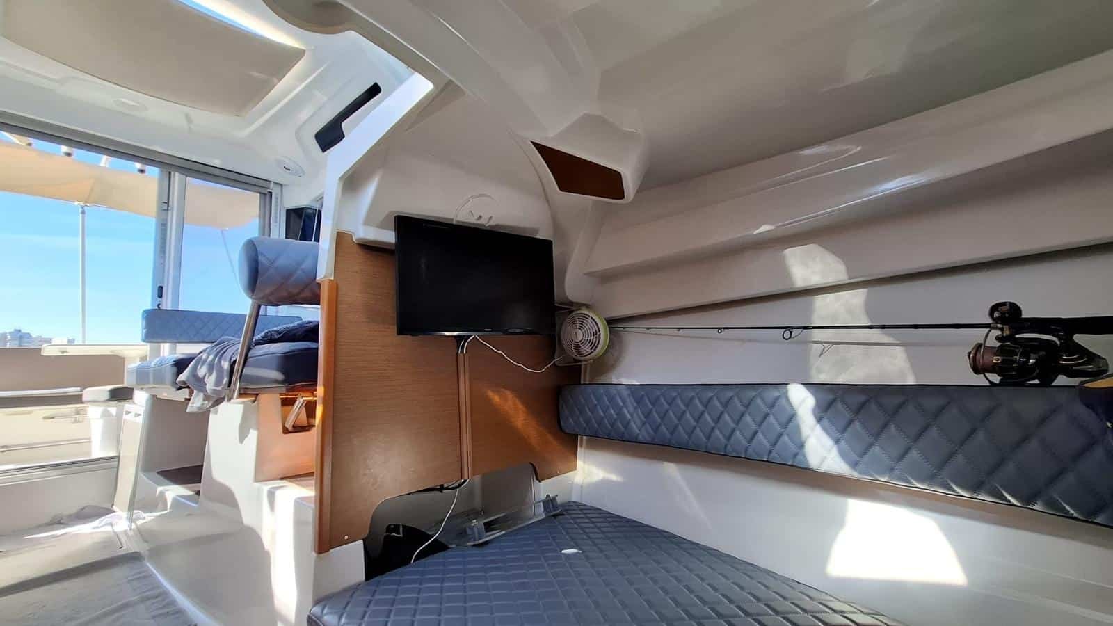 A bordo, la Merry Fisher 795 ofrece una disposición interior pensada para maximizar el confort: cuenta con 1 cabina, salón convertible en cama, 4 literas, además de un baño completo. La vitrocerámica, la antena de TV y la escotilla practicable en proa suman comodidad y ventilación.