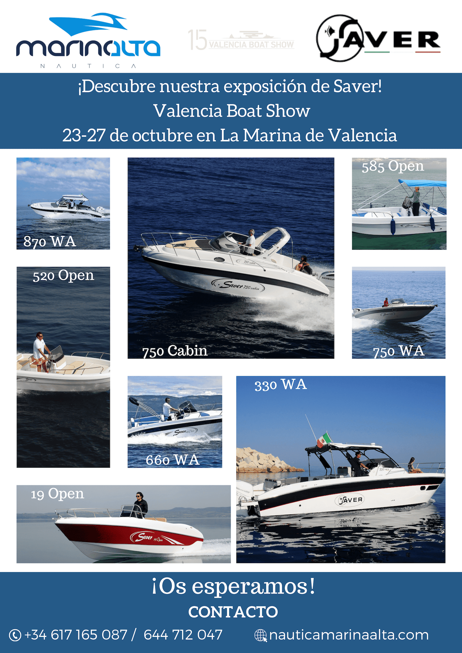 - Novedades en embarcaciones: presentaremos la última gama de barcos Saver, con modelos innovadores que combinan diseño, tecnología y confort. Tanto si eres un apasionado del mar como si buscas iniciarte en el mundo náutico, tenemos algo que ofrecerte.