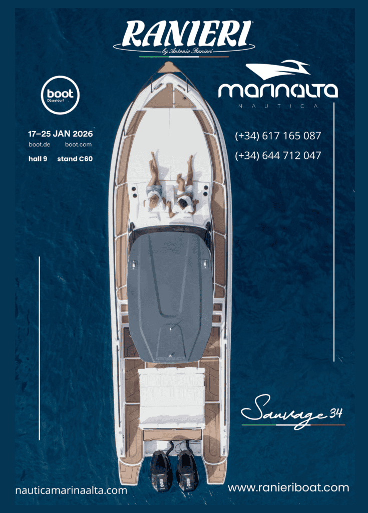 Náutica Marina Alta estará presente en el Boot Düsseldorf 2026, uno de los salones náuticos en interior más importante del mundo, que se celebrará del 17 al 25 de enero de 2026 en el Messe Düsseldorf. En esta edición acudimos junto a Ranieri Boats, presentando uno de sus modelos estrella: la Ranieri Sauvage 34. Podrás visitarnos en el Hall 9 – Stand C60.